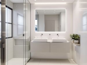 Fronty pozbawione uchwytów nadają zabudowie lekkości i elegancji, idealnie wpisując się w modny minimalizm. Szafki otwierają się za pomocą mechanizmów push-to-open lub odpowiednio profilowanych krawędzi, co podnosi komfort codziennego użytkowania i wpływa pozytywnie na estetykę pomieszczenia.